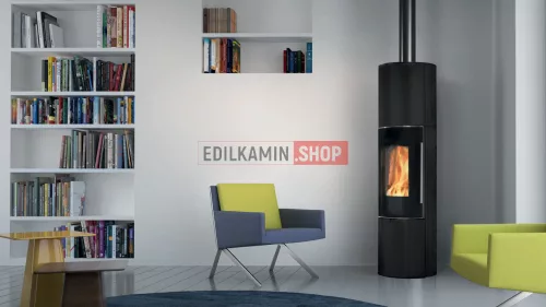 Edilkamin Tally Up S Evo fatüzelésű kályha - modern korunk stílusábanA Tally Up S Evo fatüzelésű kályha nagy kerek üvegablakkal rendelkezik, amely maximalizálja a láng látványát. A tűztér vermikulitból vagy opcionálisan öntöttvasból készült, a füstelvezető nyílás pedig felül és hátul található. Az Edilkamin Tally S Evo automata tűztérajtóval rendelkezik, amely viszont csappantyúval van ellátva. Az Edilkamin Tally S Evo készülékben a forró levegő természetes konvekcióval kerül továbbításra, az égési levegőt pedig egy vezérlőrendszer szabályozza. A kályha függőlegesen 33 cm, vízszintesen pedig 25 cm-es rönkök tárolására alkalmas. Az alsó házba (fadepóba) akár 30 kg fa is elfér. A gyönyörű előlapról jól látható a lángoló tűz.